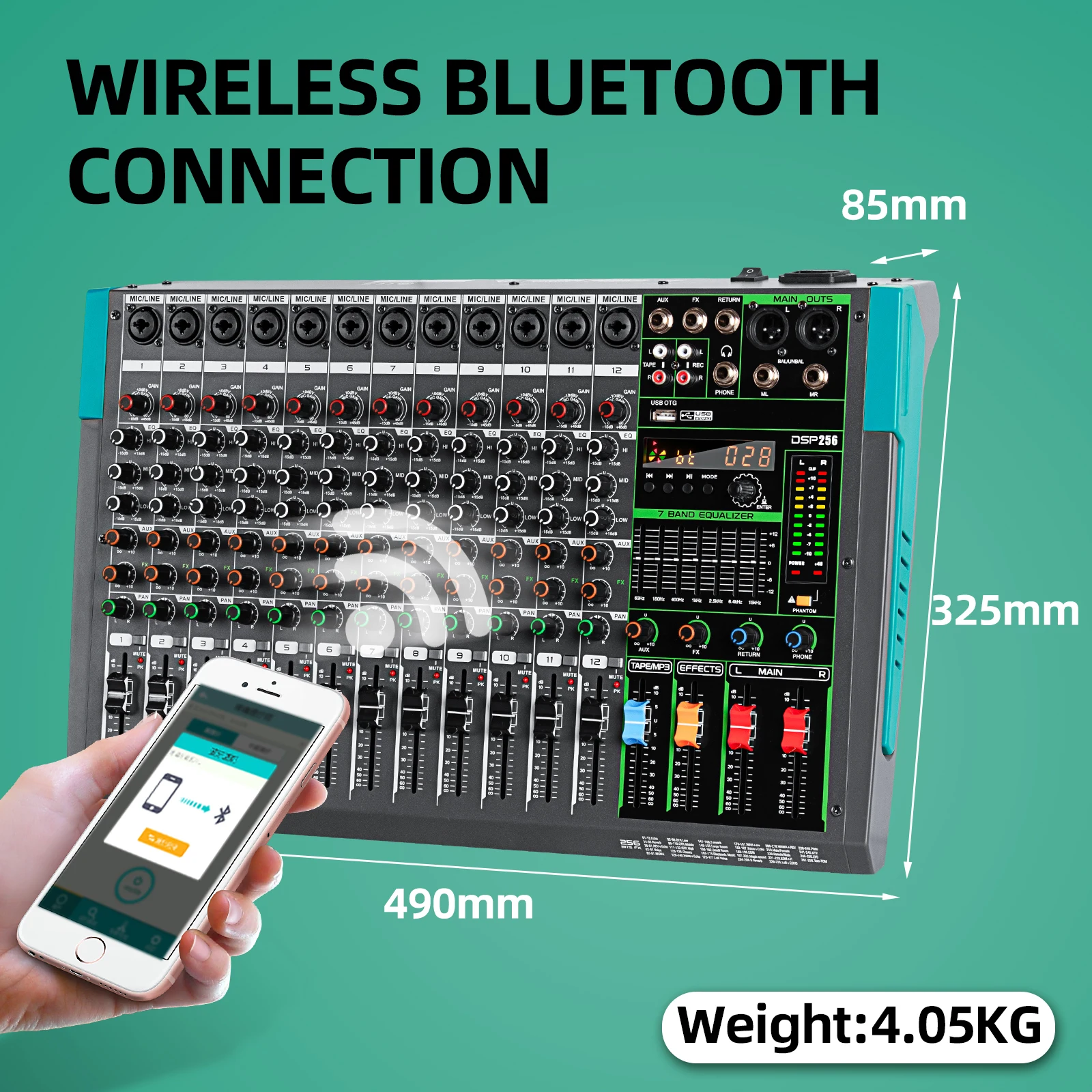 This portable 12-channel DJ mixer features Bluetooth wireless streaming and uses it as an input to mix signals with other input channels. It works on IOS, Android, tablets and MP3 players.