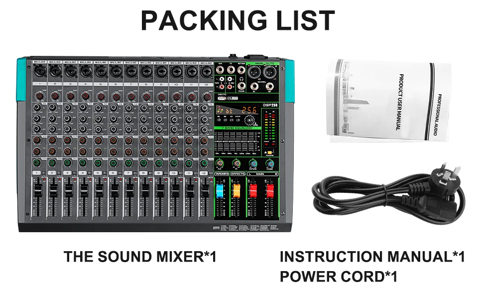Depusheng MG12 Professional Audio Mixer 12Channel Sound Board Console DJ Mixing Desk System Interface Built-in 256 Reverb Effect