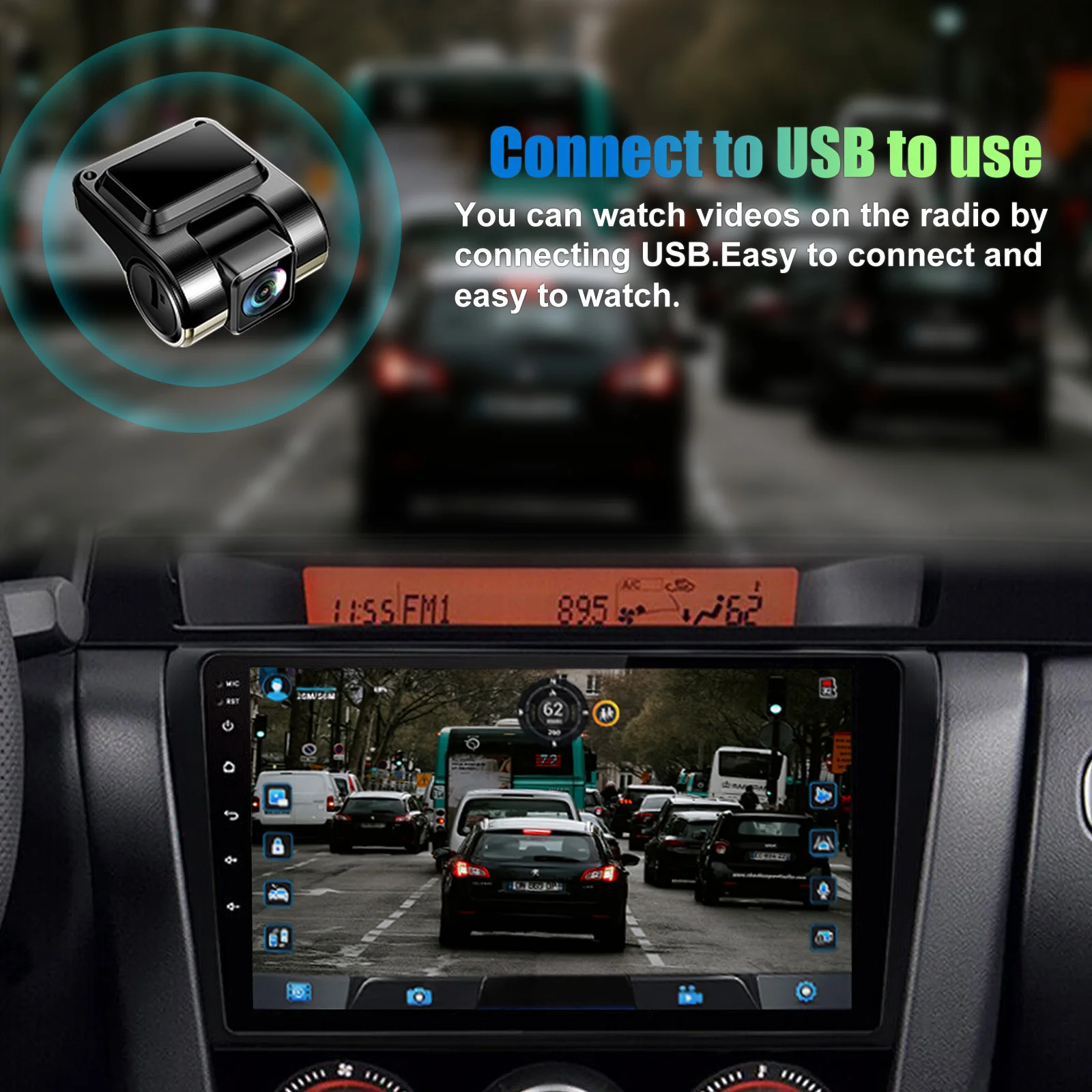 (Optional) Support 1080P Dash Camera: This USB-connected Dash Cam offers high-definition recording, wide-angle view, loop recording, longer loop recording time, convenient video file management, and better high-temperature resistance and stability. It allows you to record your driving for extended periods, easily manage and browse video files, regardless of high temperatures or weather conditions.