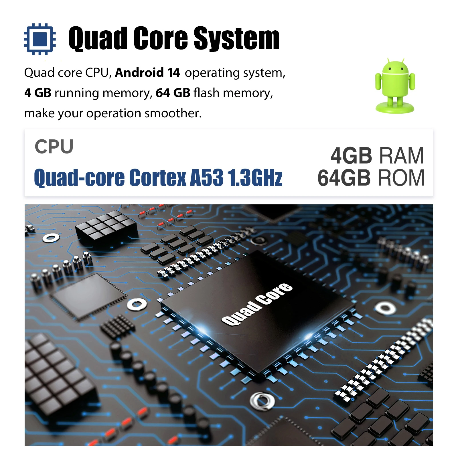 CPU: 4x Cortex-A53 1.3GHZ