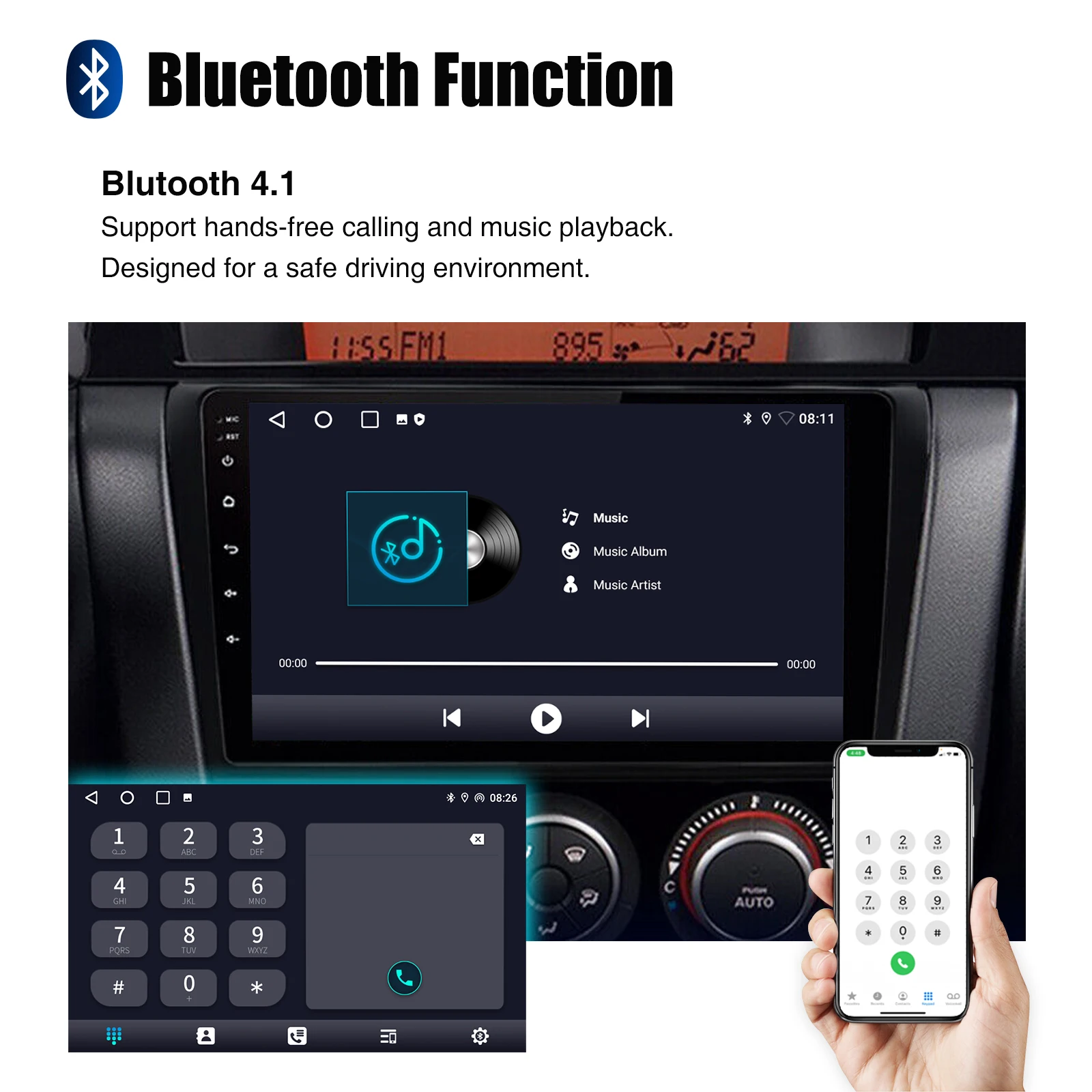 RDS/FM Radio & Bluetooth & ASP Sound Setting: Supports Bluetooth 4.1, with built-in microphone so you can make hands-free calls while driving. Support access to phone book, music playback interface, etc. RDS supported. You can save 18 FM radio stations. Built-in ASP chip. Supports 32-band EQ setting, which can be adjusted according to your personal preference. Which is very similar to your original sound. 4 x 45W amplifier, surround sound and subwoofer output