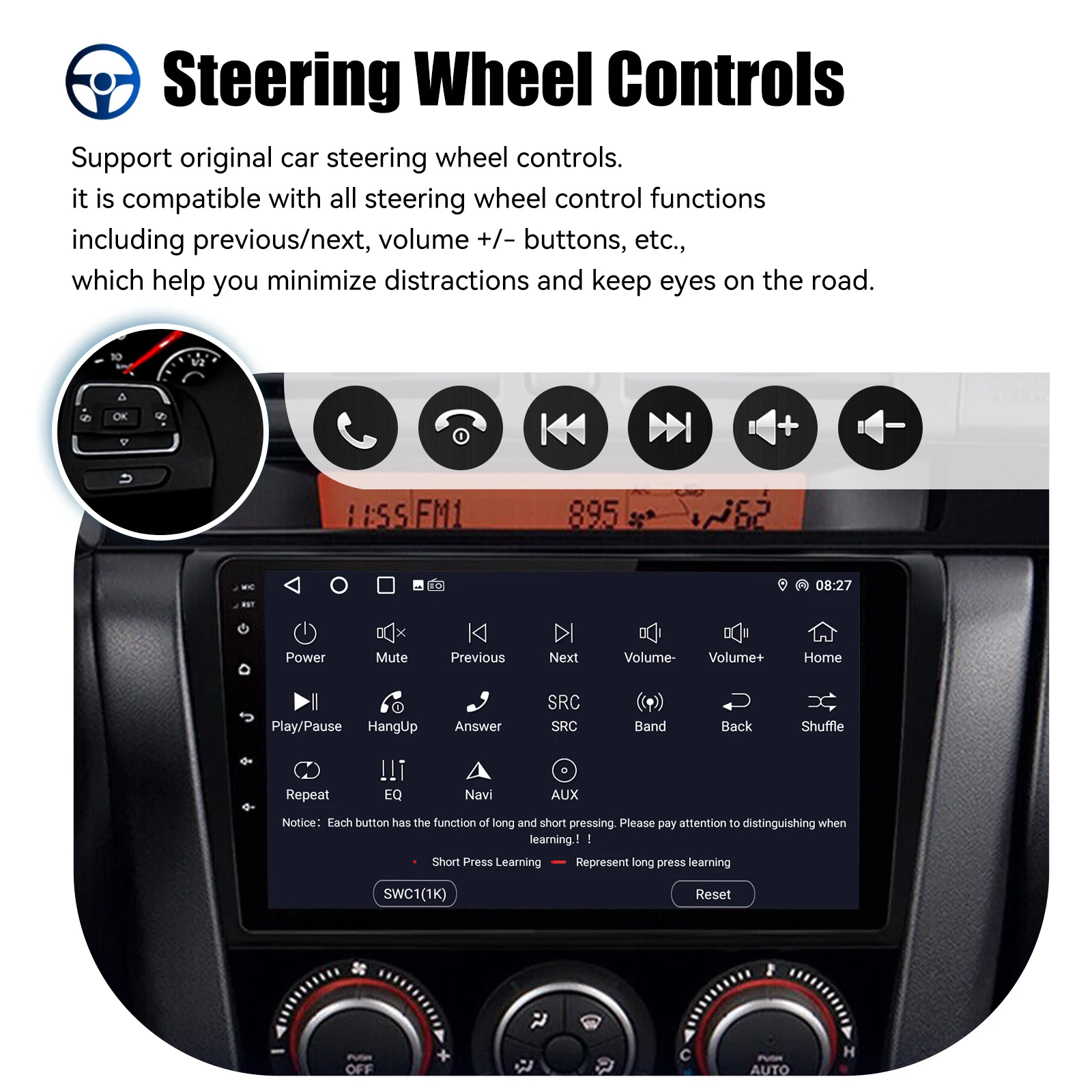 (Optional) AHD Rear View Camera Input & Steering Wheel Control: After connecting to the rear view camera. The radio automatically displays the reversing image as soon as you engage reverse gear. Make your daily reversing safer. Support AHD camera. Support original car steering wheel control to make driving more convenient and safer.