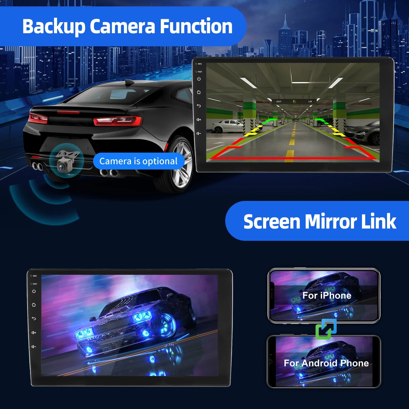Mirror Link & Wireless Carplay & Android Auto: With this car radio, you will experience the impressive Mirror Link function, compatible with iOS and Android phones. You can mirror your smartphone screen to the car radio using apps like Google Maps, Spotify, Youtube, etc. Replace your mobile phone with the car screen and turn your vehicle into a smart platform. Immerse yourself in a seamless and user-friendly infotainment experience with Apple CarPlay & Android Auto. Connect your iPhone to Apple CarPlay or your Android smartphone to Android Auto and securely access calls, texts, navigation, music and more. With intuitive operation via the touchscreen or voice control, you have all functions at your fingertips while you remain safely at the wheel. Use your favorite apps and stay connected at all times while keeping your eyes on the road. Turn your vehicle into an extended hub for your mobile devices and experience a new dimension in infotainment.