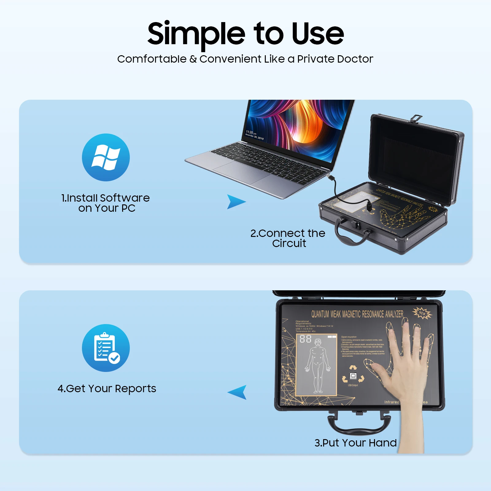 Simple to Use: You just need to install the software on your device, connect all the lines, put your hand on the infrared sensing area, and get your reports.