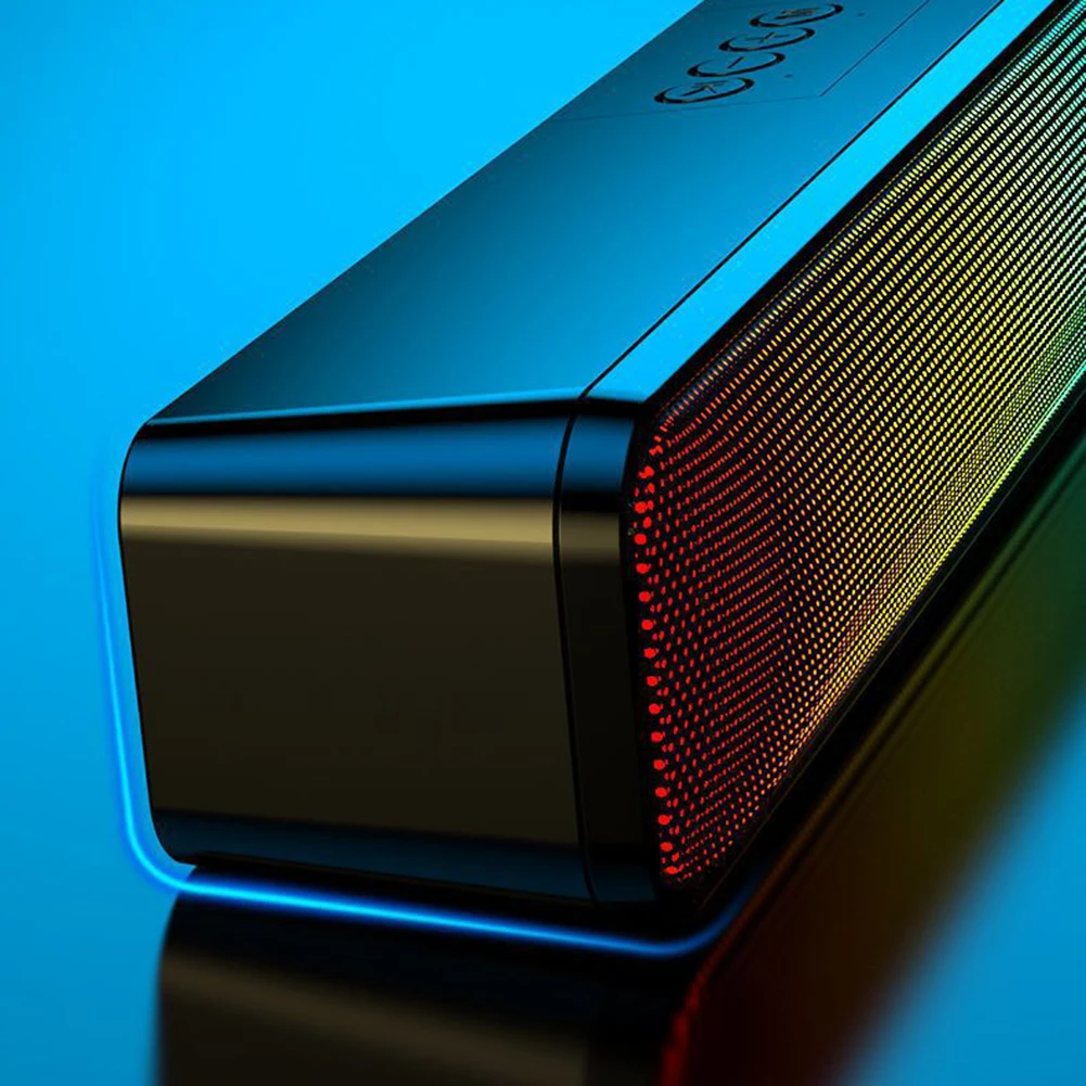 2.Stylish Illuminated Design: Not only does this speaker offer exceptional sound quality, but it also adds a touch of style to your desktop or computer setup. The 3d stereo sound bar features an illuminating design that enhances its visual appeal. The stylish illumination creates a captivating ambiance in your room, making it a perfect addition to any modern decor.