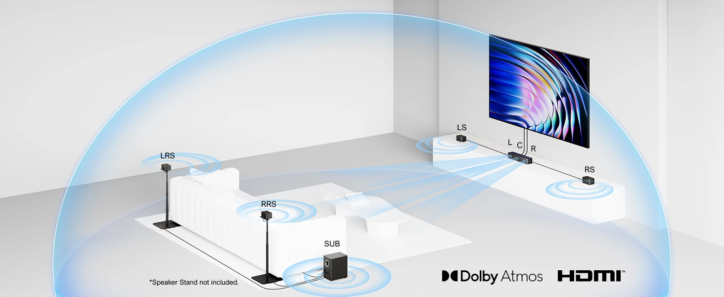 Through SurroundX’s advanced audio algorithms, the sound field is optimized based on the audio signals from the left and right main channels, making the rear sound field wider and creating an expansive soundstage.