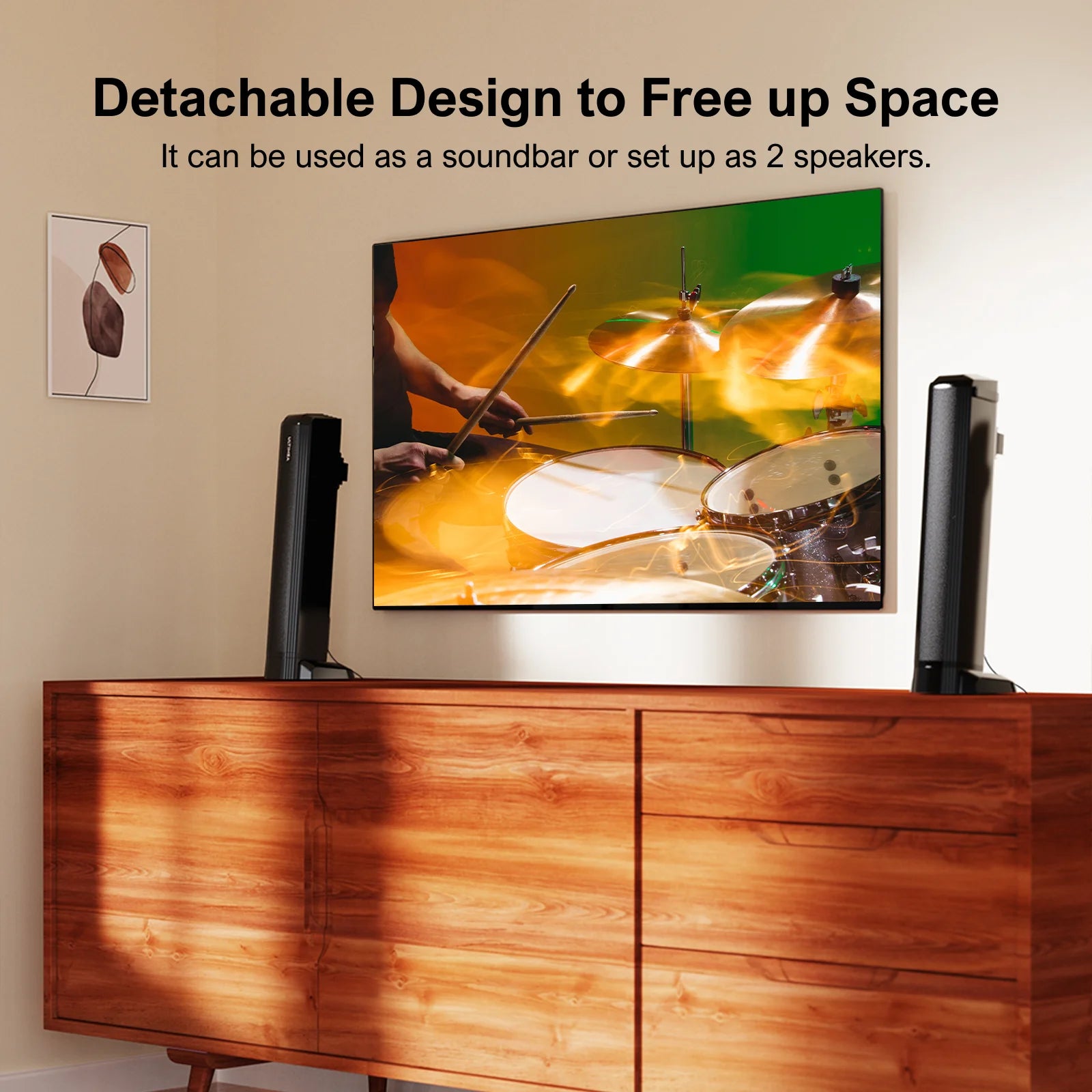 Versatile and Space-Saving Shape - The soundbar's detachable design allows you to assemble it in a variety of styles to fit the layout and atmosphere of your room. The split design saves space while still enhancing the sound field.